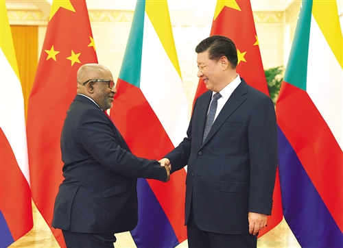 9月1日,国家主席习近平在北京人民大会堂会见科摩罗总统阿扎利。 新华社记者 饶爱民摄 |