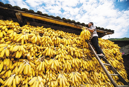 九月二十二日,湖北省十堰市竹山县麻家渡镇蛟龙村村民在晾晒玉米。金秋九月,五谷丰收,瓜果飘香。人们在收获的喜悦中迎接即将到来的中国农民丰收节。