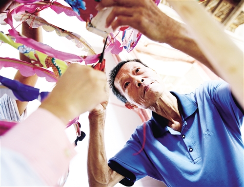 在江西省吉水县金滩镇南下村,71岁的曾达清是南下花灯非遗传承人。受父亲的影响,曾达清12岁就开始学做花灯。现在,他的儿子、儿媳也跟着他学做花灯。