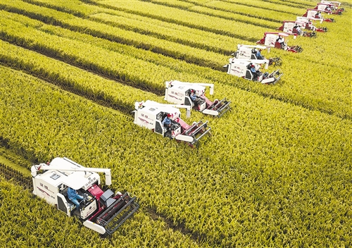 | 9月20日,江苏省盱眙县黄花塘镇,农民驾驶收割机收割水稻。连日来,盱眙县加快水稻收割进度,喜迎首届中国农民丰收节。 周海军摄 |