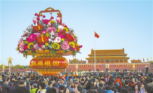 假日第一天,节日氛围浓厚,红色旅游升温。北京天安门广场举行隆重的升国旗仪式,吸引了14.5万名游客,“祝福祖国!”“祖国万岁!”大家向祖国送上发自内心的祝福。