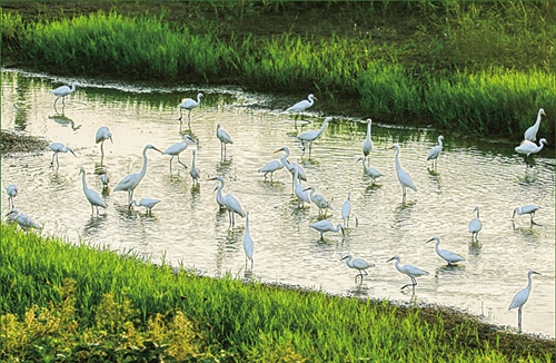 湿地精灵 祁慧摄于江苏省宿迁市沭阳县。 ▲点评:白鹭觅食于清水绿草间,充分体现当地良好生态环境。 |