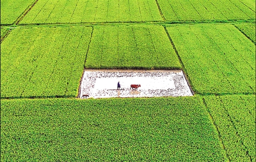 ◀点评:作者选择独特角度表现一幅充满人文气息的夏至农耕图。 夏至农耕 刘浩军摄于江西省吉安市永丰县七都乡舍下村。 |