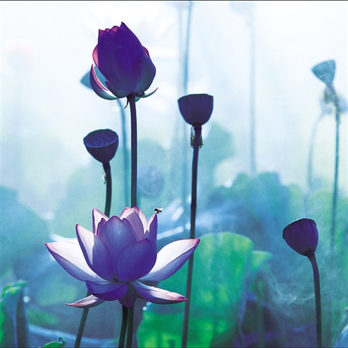 荷塘之夏 邹忠摄于江西省宜春市。 ▲点评:薄雾中亭亭玉立的荷花盛开,蜜蜂轻立花尖,画面优美、宁静和谐。 |
