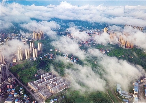 人间仙境 周松林摄于四川省华蓥市。 ◀点评:林在城中,城在云里,好一幅生态宜居城市图。 |