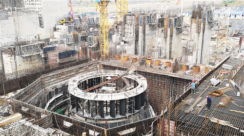 10月11日,广西桂平大藤峡水利枢纽工程正在紧张施工。大藤峡水利枢纽是珠江流域防洪控制性枢纽工程,也是珠江—西江经济带和“西江亿吨黄金水道”基础设施建设的标志性工程。本报记者 翟天雪摄