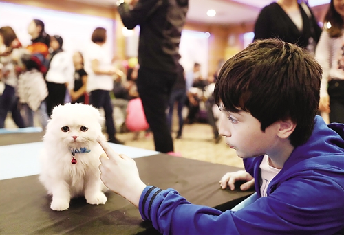 近日,土耳其安卡拉举行猫咪“选美”比赛,约200只猫在这里角逐“最美猫咪”桂冠。图为在安卡拉,一只猫咪参加“选美”比赛。