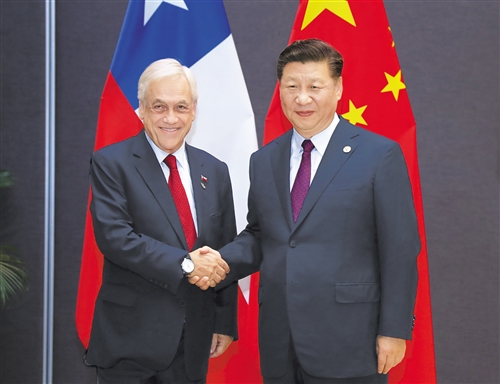 皮涅拉表示,智中关系牢固并强劲有力。中国是智利第一大贸易伙伴和主要投资来源国。智中自贸协定升级协议为两国合作开辟了更加广阔的空间。智利愿同中国密切高层交往,深化贸易投资、基础设施建设、科技等领域合作,共建“一带一路”,共同维护自由贸易,建设开放型世界经济。智方期待着同中方保持沟通协调,推动明年亚太经合组织领导人非正式会议取得积极成果。