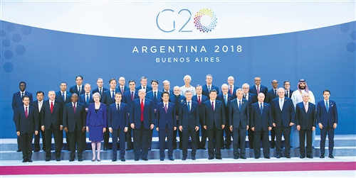 当地时间11月30日,二十国集团领导人第十三次峰会在阿根廷布宜诺斯艾利斯举行。国家主席习近平出席第一阶段会议并发表题为《登高望远,牢牢把握世界经济正确方向》的重要讲话。这是习近平同其他与会领导人合影。 新华社记者 李 涛摄