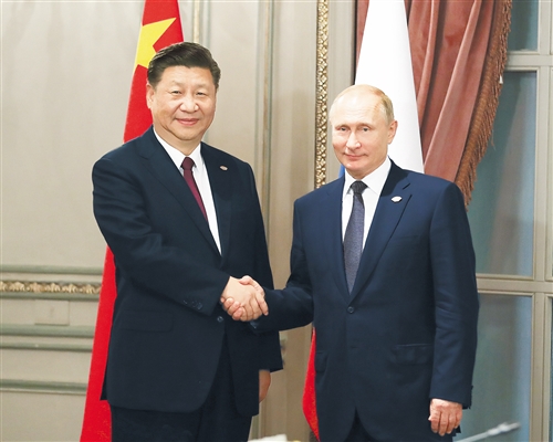 普京表示,俄中保持密切高层交往十分重要。当前俄中各领域合作取得显著成效,双边贸易迅速增长,制造业、高科技、农业领域合作稳步推进,大项目顺利实施,在国际和地区事务中有效协调。俄方致力于同中方深入推进各领域务实合作,继续密切协调,为维护全球和平与安全、建设开放型世界经济共同努力。