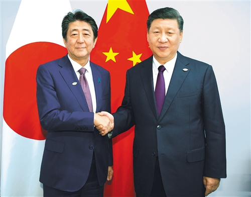 习近平强调,新形势下,中日发展关系面临比以往更为有利的条件。中日经贸务实合作潜力巨大。我们欢迎日方继续参与中国改革开放进程,共享中国发展新机遇。双方要充分发挥互补优势,拓展合作广度和深度。要争取早日谈成区域全面经济伙伴关系和中日韩自由贸易协定。要发扬民间友好传统,加强人员交流,夯实中日关系社会和民意基础。要按照我同首相先生就构建建设性双边安全关系达成的原则共识,不断增进战略安全互信。双方要切实妥善处理好一些重大敏感问题,确保两国关系不再受到干扰。中方支持日方办好明年二十国集团领导人峰会。