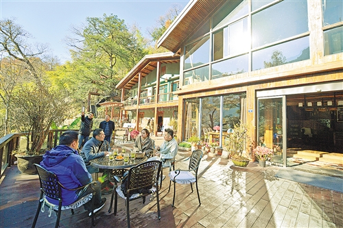 11月30日,全国发展乡村民宿推进全域旅游现场会在浙江安吉召开,会议提出发展乡村民宿是促进文化和旅游消费的重要途径。图为11月27日,游客在浙江省安吉县大溪村民宿院中聊天。近年来,安吉县民宿行业实现了从“点上萌芽”向“遍地开花”的转变。今年前10个月,全县民宿接待游客993万人次、直接营业收入17.9亿元。本报记者 高兴贵摄