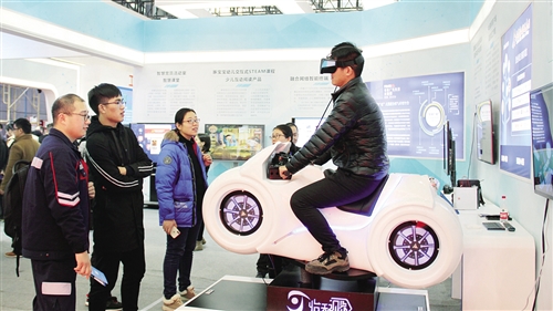 近日,观众在安徽合肥滨湖国际会展中心隆重举办的庆祝改革开放40周年科技创新成果展览上体验高科技产品。此次展会以“创新驱动,科技引领,建设现代化五大发展美好安徽”为主题,集中展示安徽改革开放40年来的科技创新成就等内容。