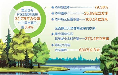 全面停止天然林商业采伐,标志着重点林区以牺牲森林资源为代价的发展历史彻底结束,从此进入全面保护发展的新阶段。3年多来,重点国有林区每年减少木材产量373.4万立方米,每年少消耗森林蓄积630万立方米。同时,我国森林资源监管体制正逐渐完善,3年来累计督查督办案件2091起,处理违法违纪人员1795人。