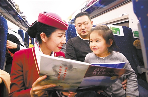 靳迪告诉记者,所有服务人员在上岗之前都会经过严格的培训,高铁上的工作很繁琐,但只要自己的服务给旅客带来良好的乘车体验,看到他们满意的笑容,便不觉得辛苦。
