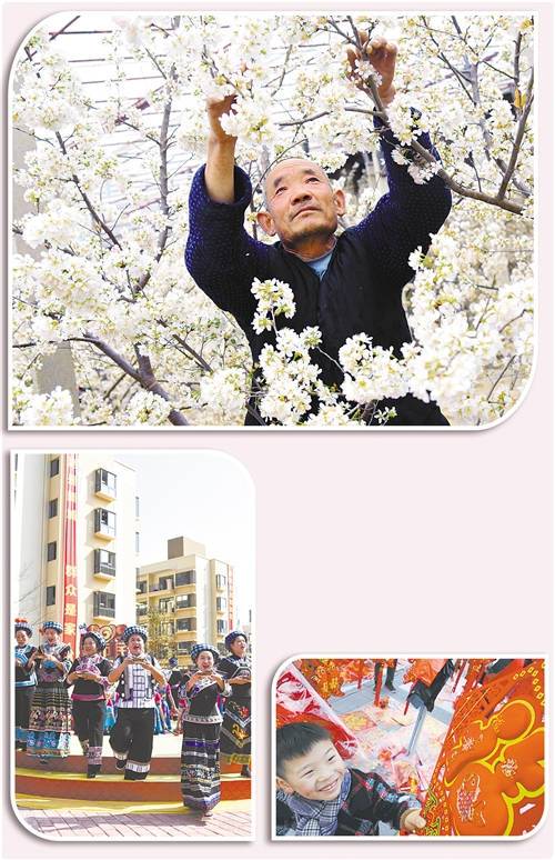 左图 2月5日,贵州省黔西南布依族苗族自治州册亨县易地扶贫搬迁新市民居住区,群众表演节目,热热闹闹庆新春。 刘朝富摄(中经视觉)