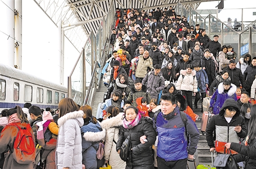 2月8日,旅客带着行李在安徽省亳州火车站进站乘车。春节假期过半,安徽省亳州火车站节后旅客返程客流渐增,众多外出务工人员背上行囊开始踏上返程路。