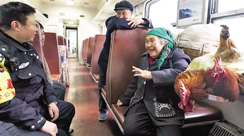 2019年春运大潮中,复兴号飞驰在祖国广袤大地上,让回家的旅途时间越来越短,而在秦岭山中穿梭了61年的6063/4次绿皮旅客列车,依旧慢悠悠地载着山里人的土特产一站站停靠。有人坐这趟车求学、走出大山;有人坐这趟车贩货赶集、脱贫致富;更有人在这趟车上遇到真爱,组成家庭。这趟穿行在宝成铁路宝鸡至广元区间的“民生小慢车”成为了学生眼中的校车、百姓眼中的脱贫火车、游客眼中的风光专列。对于不到9个月即将退休的西安铁路公安处乘警陈超来说,这是他护航“民生小慢车”的最后一次春运。