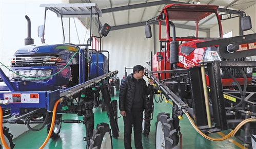 2月23日,在山东省滨州市博兴县经济开发区一家农机销售公司,农民正在选购智能农机。目前正是春耕备耕时节,在山东省滨州市博兴县,植保无人机、自走式喷杆喷雾机等智能农机受到青睐。陈 彬摄(中经视觉)
