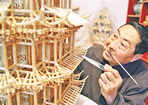 精雕细琢的黄鹤楼,古香古韵的故宫角楼,庄重又不失玲珑的飞云楼……在河北省廊坊市永清县扎刻大师徐艳丰手中,一件件用高粱秸秆制作而成的古建筑模型惟妙惟肖,作品不但作为国礼多次参加国际文化交流,数件代表作还被中国美术馆收藏。
