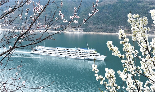 3月2日,船只航行在长江三峡巫峡段。近日,随着气温的回升,重庆市巫山县的油菜花、杏花、樱桃花等次第绽放,巫峡两岸宛若绮丽的画廊,充满诗情画意。 王忠虎摄(中经视觉)