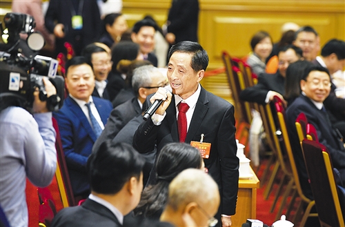 下图 3月6日,人大湖北代表团举行全体会议,审议政府工作报告。王能干代表(中)认为,小康不小康,关键看老乡;老乡富不富,不忘贫困户。扶贫工作要在扶智扶志上下功夫,帮助贫困人口树立挖穷根的信心。本报记者 李景录摄