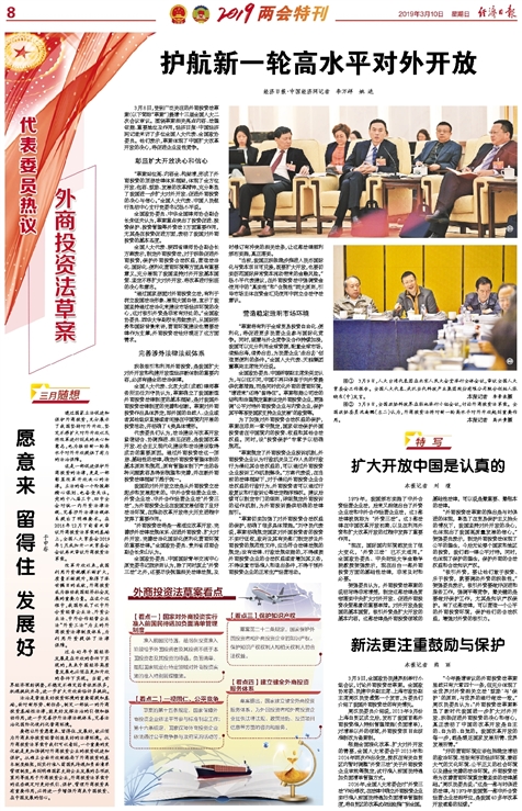 3月8日,受到广泛关注的外商投资法草案(以下简称“草案”)提请十三届全国人大二次会议审议。围绕草案相关亮点内容、法理依据、重要地位及作用,经济日报·中国经济网记者采访了多位全国人大代表、全国政协委员。他们表示,草案体现了中国扩大改革开放的决心,将促进企业良性竞争。
