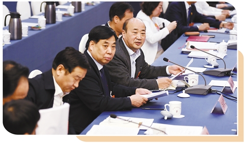 3月9日,人大河南代表团举行会议,分组审议全国人大常委会工作报告。全国人大代表、河南郑州市人大常委会党组书记胡荃(中)在审议报告发言时说:“脱贫攻坚任务必须如期完成。”