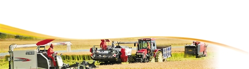 收割机在黑龙江省三江平原一处稻田收割水稻。