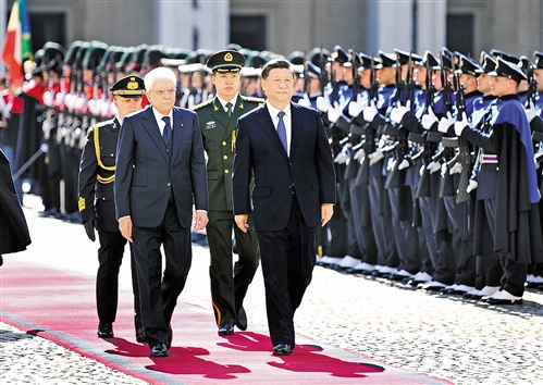 3月22日,国家主席习近平在罗马同意大利总统马塔雷拉举行会谈。会谈前,马塔雷拉总统为习近平举行隆重欢迎仪式。