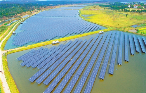3月21日,航拍的江西省吉安市泰和县万合镇“渔光互补”光伏扶贫发电项目。近年来,泰和县把光伏产业作为扶贫的主导产业来抓,利用赣江滩涂、废弃河道、厂房屋顶等,发展光伏发电项目,给贫困户创造了稳定的收入来源。