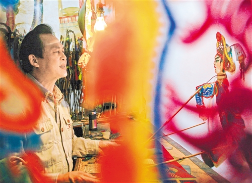一口述说千古事,双手舞出百万兵。湖北云梦皮影戏源于清中叶。前台演唱、操纵,后台击乐伴奏,轻装简从,俗称二人台,有“戏剧轻骑”之称。云梦皮影戏兴衰更迭,绵延至今,仍有皮影戏26台,演出长年不断,开创了当代古老民间皮影艺术演出的奇迹。