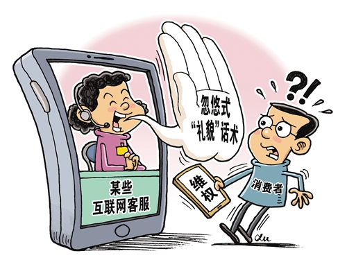 一段时间以来,不少消费者反映,本应是职业规范的“礼貌”客服,在部分企业却成为消费维权路上的一道“关卡”。在某消费投诉平台上,对“客服”的投诉多达8.2万条,消费者纷纷表示,“磨叽半天只会推三阻四”“就会打太极反复说尽快处理”……中消协近日公布的消费者投诉数据显示,2018年售后服务问题位居全国消协组织受理投诉第一位,互联网服务在服务大类投诉中排名第三。客服的忽悠式“礼貌”话术,有的属于企业管理不规范,有的属于商业失信。对此,市场监管部门应提醒规劝相关企业,并依法处理严重侵害消费者权益的案例。企业应认识到,完善的客服管理机制对维系客户、良性发展必不可少。 (时 锋)