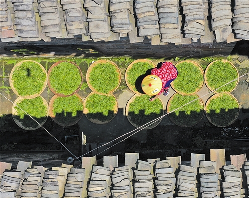 4月7日,在湖南省衡南县宝盖镇扶贫基地,当地村民在筛选采回来的春茶。近年来,该县将发展有机茶作为脱贫攻坚的重点产业来抓,通过龙头企业带动,采取“公司+合作社+基地+农户”模式,在宝盖镇种植了千亩有机茶,助力精准脱贫。