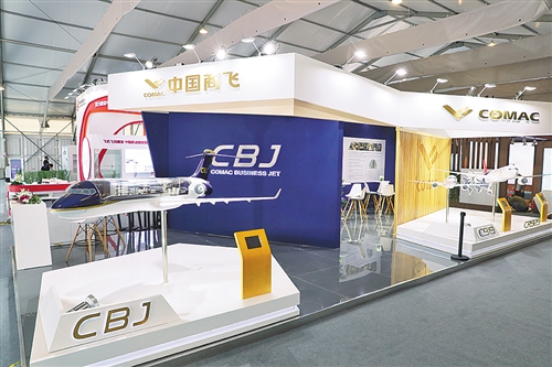 下图 4月16至18日,第八届亚洲公务航空大会及展览会在上海虹桥国际机场公务机基地拉开帷幕。中国商飞公司首次携CBJ公务机剖开式模型参加本届航展,全面展示公司发展建设和CBJ公务机研制情况。本报记者 李治国摄