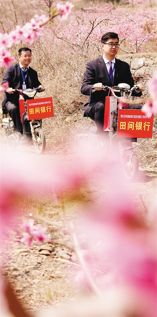 | ◀假日期间,山东省枣庄农村商业银行股份有限公司市中支行工作人员走乡串户,深入田间地头现场办理小额贷款,助农民增收致富。 吉 喆摄(中经视觉) |