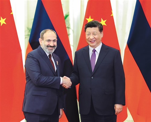 帕希尼扬表示,热烈祝贺中华人民共和国成立70周年,祝贺中方成功举办第二届“一带一路”国际合作高峰论坛。亚中都是文明古国,历史上贸易、文化联系紧密。亚美尼亚从战略高度看待两国关系发展,愿积极参加共建“一带一路”。亚美尼亚致力于坚定打击恐怖主义势力。