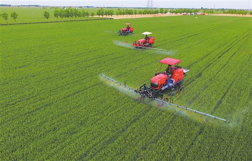 5月15日,河北省南和县郝桥镇前西村农民使用机械设备作业。