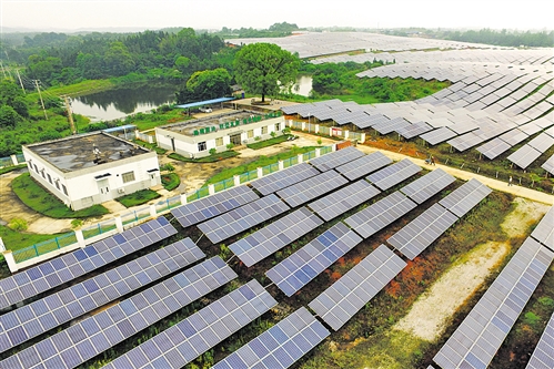 图为江西省宜丰县棠浦镇由老煤矿转型“变身”的500亩光伏发电产业基地。近年来,该县在关闭全县16家地方煤矿之后,支持煤矿退出企业与本地绿色生态产业对接,使原来“千疮百孔”的老煤矿变身为绿色生态产业基地。