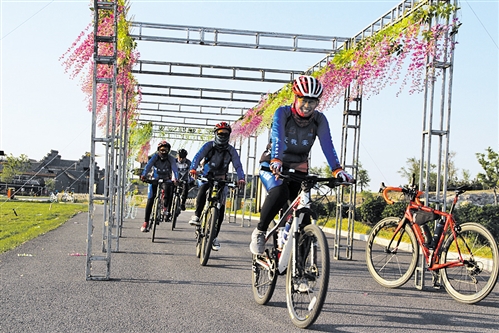 5月2日,梦之队骑行俱乐部在齐鲁酒地千亩花海晨间骑行、游览。山东安丘经济开发区青龙山片区原是废弃采石坑,生态环境脆弱,2012年规划建设齐鲁酒地文化创意产业园,目前已成为一个文旅休闲养生区。 吴小宝摄 (中经视觉)
