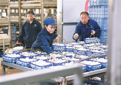 上图 5月25日,湖南省东安县井头圩镇霞栖农业产业园扶贫车间,贫困户在采摘双孢菇。近年来,东安县坚持把扶贫产业种植与养殖、生产与经营、加工与流通等相结合,以产业带动就业,助推全县30个贫困村、上万户贫困户脱贫摘帽。陈莉芳摄(中经视觉)