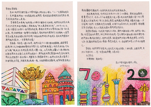 濠江中学创建于1932年,以爱国爱澳、为社会培育人才为办学宗旨,是澳门中小学生人数最多的学校。该校素有爱国主义传统,1949年10月1日新中国刚刚成立,时任校长杜岚就带领学校师生升起了第一面五星红旗。近日,濠江中学附属英才学校的小学生给习主席写信,讲述了他们对“祖国母亲”含义的理解,表达了长大后把祖国和澳门建设得更美好的决心。