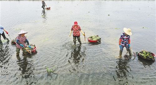 6月1日,安徽省合肥市庐江县白湖镇杨柳圩农民正抢抓农时栽种芡实。近年来,庐江县合理调整种植结构,万亩芡实成了农民“致富果”。