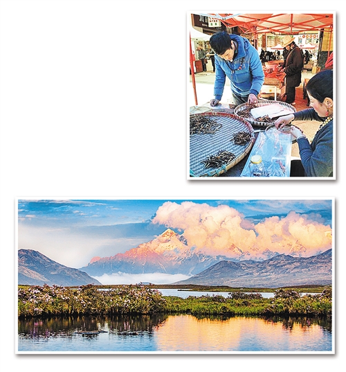吃过一碗热腾腾的酥油茶,嘴角还带着馨香的油脂,我们一起去早市上赶虫草。