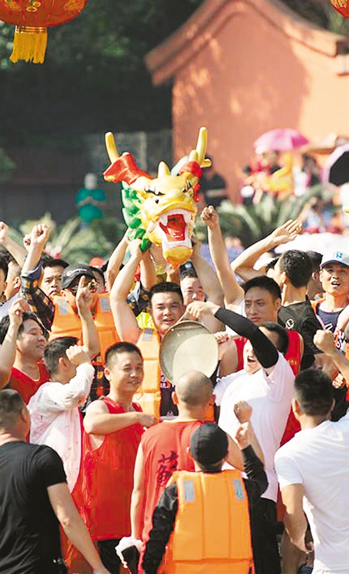 左图 端午节前夕,传承千年的江西省非物质文化遗产龙舟活水仪式在新余仙女湖昌山庙水域举行。来自赣西地区的100多条龙舟参加龙舟活水日民俗活动,共祈国泰民安、风调雨顺。赵春亮摄(中经视觉)