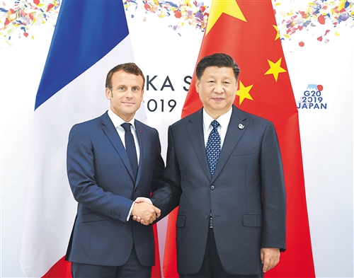 六月二十九日,国家主席习近平在大阪会见法国总统马克龙。