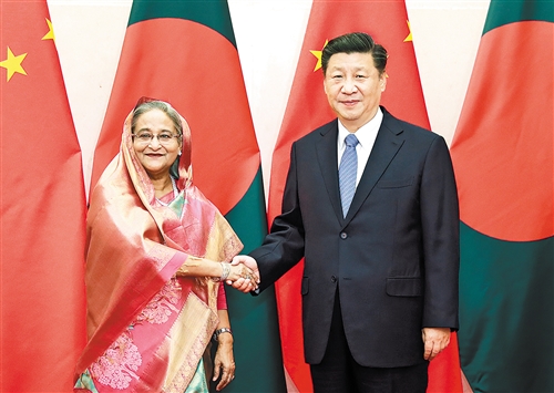 习近平指出,中国和孟加拉国是传统友好邻邦。我2016年对贵国进行国事访问时,将两国关系提升为战略合作伙伴关系,推动双边交流合作步入快速发展的新阶段,为各自国家经济社会发展注入了新的动力,也为两国人民带来了更多福祉。当前,中孟都处在各自发展的关键阶段。巩固好、发展好战略合作伙伴关系,不仅符合两国和两国人民共同利益,也有利于亚洲繁荣稳定和世界开放合作。