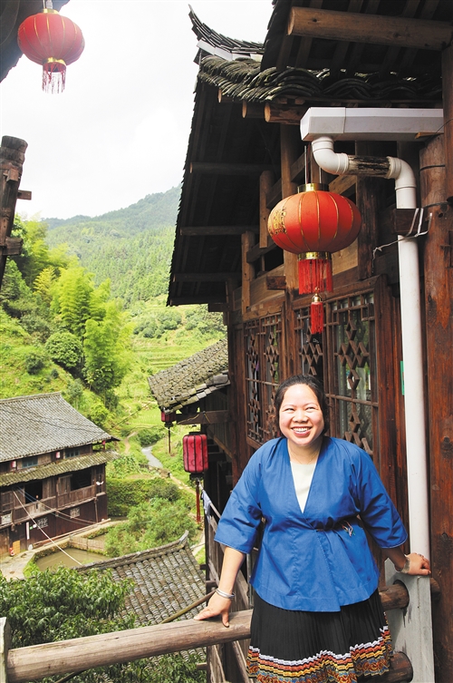 在鼓楼一角的几级石阶尽头,挂着一个招牌:崖上农家餐旅馆。这是吴团练和家人开的。上午刚开张,还没有客人,于是,记者走进餐馆,听吴团练讲起她的创业故事。