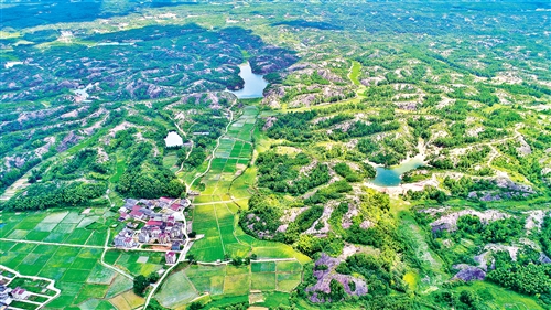 8月9日,在江西省吉安市永丰县沿陂镇拍摄的石漠水土保持绿化区。近年来,永丰县着力实施国家水土保持项目,大规模绿化荒山石漠,修复自然生态,完善水利设施,在生态环境保护和绿色产业扶贫两方面发挥积极作用。刘浩军摄(中经视觉)