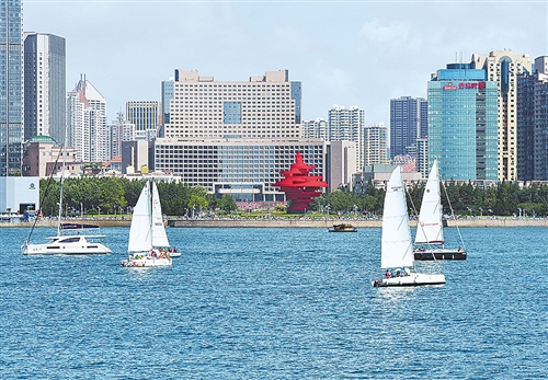 8月9日,游客在青岛国际帆船周·青岛国际海洋节上乘坐帆船,体验海上巡游。当日,2019第十一届青岛国际帆船周·青岛国际海洋节在山东省青岛奥帆中心拉开帷幕,900多名运动员参加了帆船比赛。王海滨摄(中经视觉)